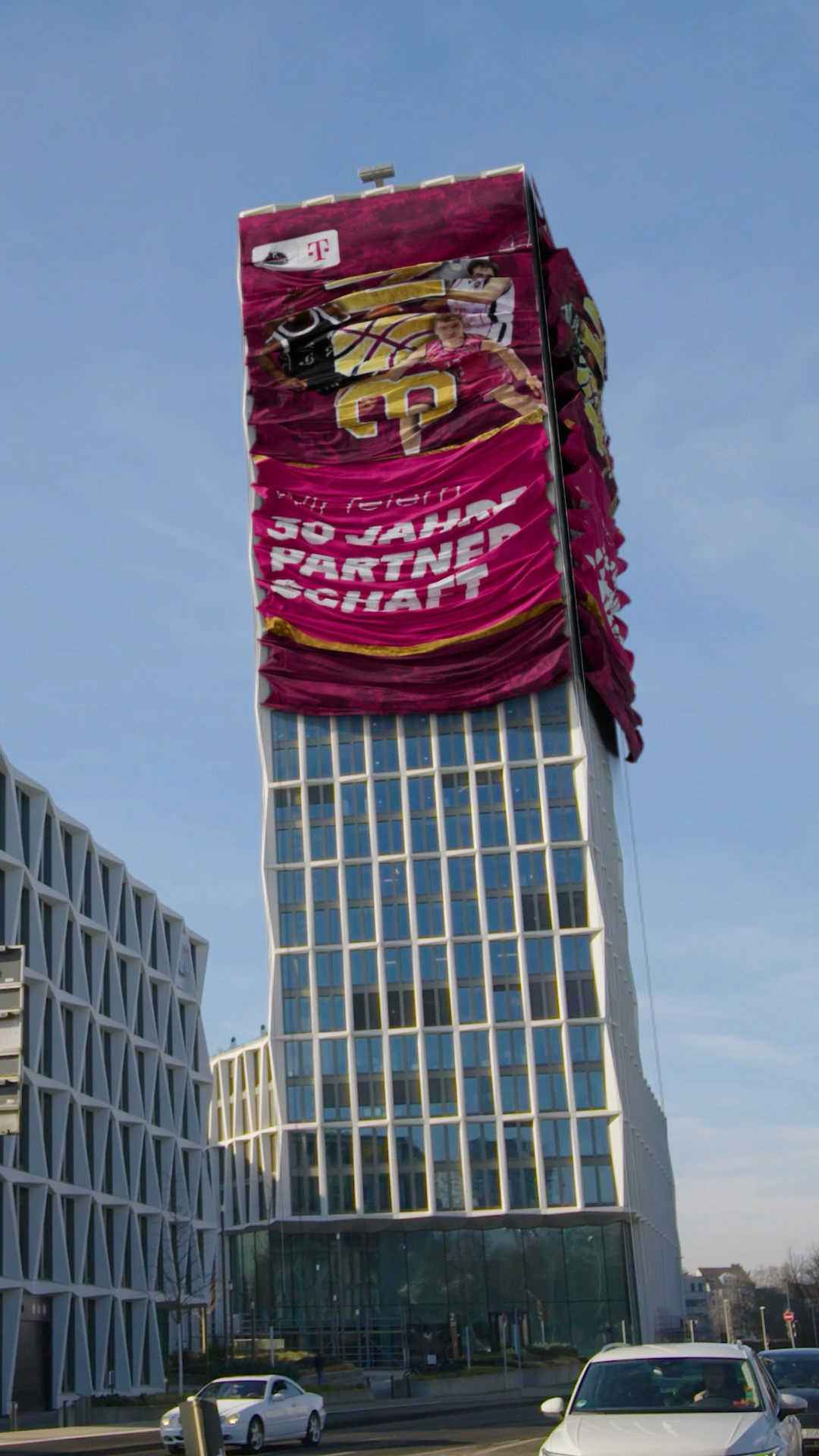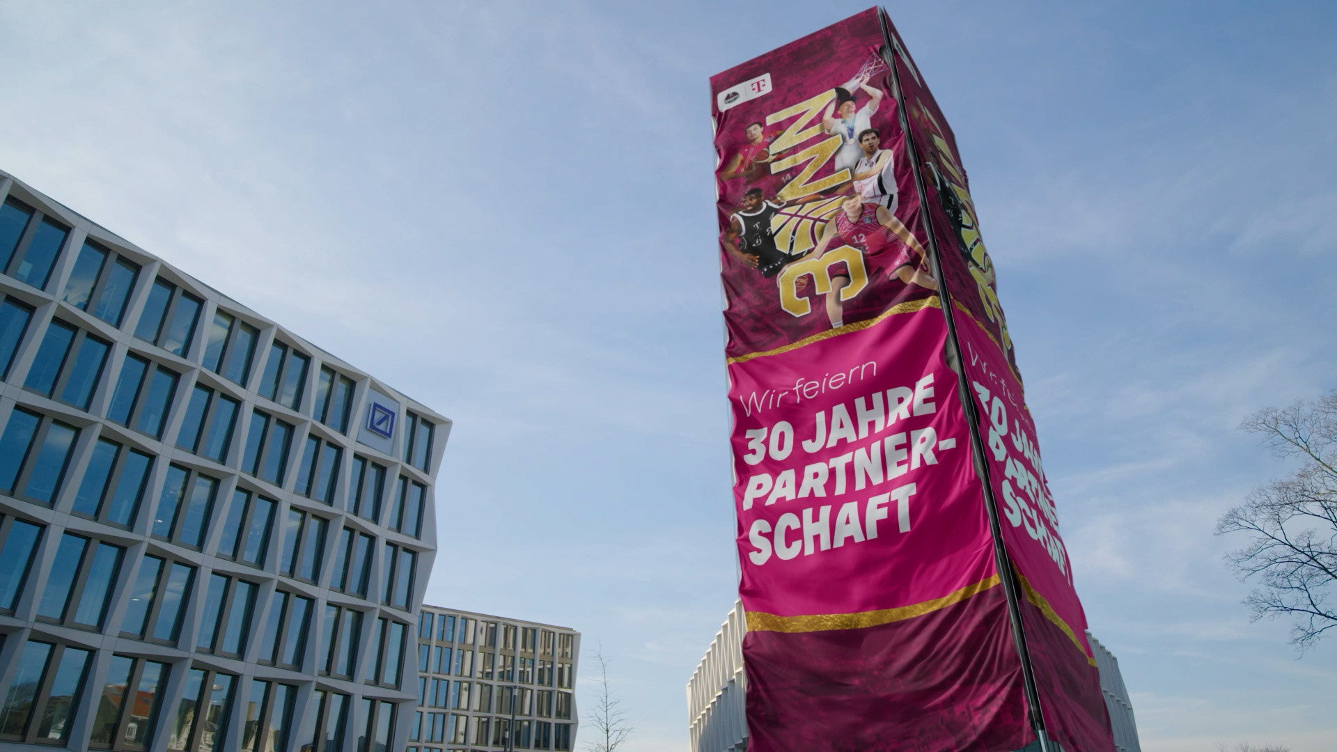 For the 30 year anniversary of the cooperation between Telekom Baskets Bonn and their main sponsor Telekom, I was tasked by Magenta Sport to create CGI banners for different locations in Bonn for Social Media Channels. The cloth was simulated in Cinema 4D, rendered with Redshift and finally composited After Effects.